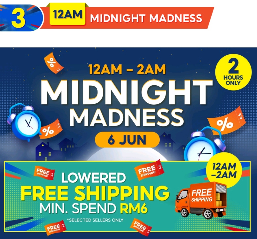 i)6月6日当天的12am 至2am,最低消费RM6 就可获得免邮券!限于指定商家!