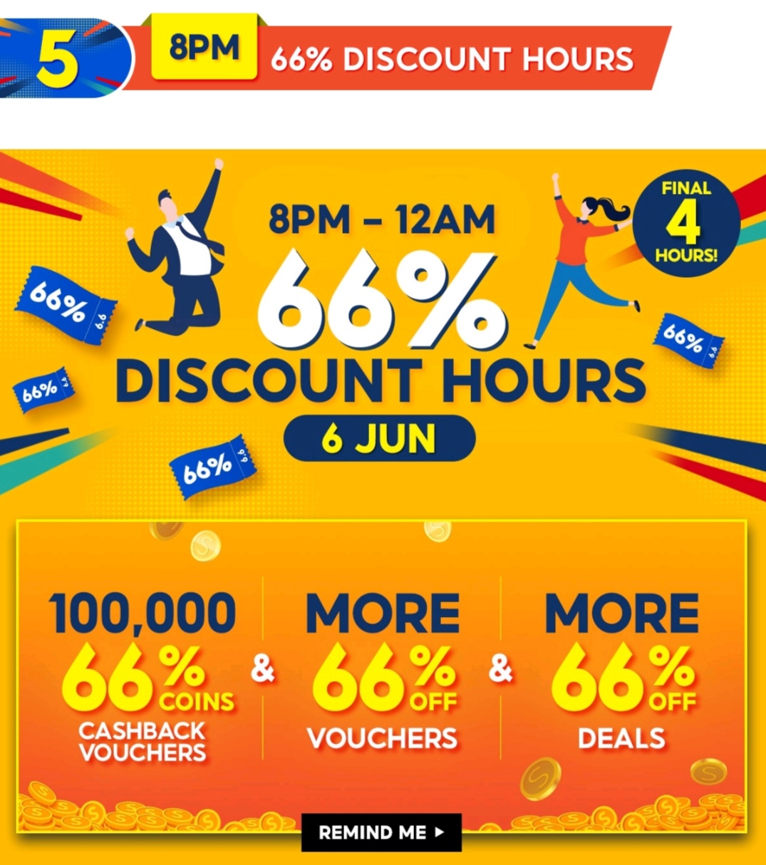 i)66%现金回扣券、66%折扣券,以及66%折扣商品!促销时间仅在8pm 至12am!