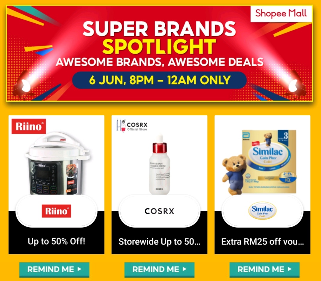 iii)Shopee Mall 指定品牌商家推出大促销!高达50%折扣!