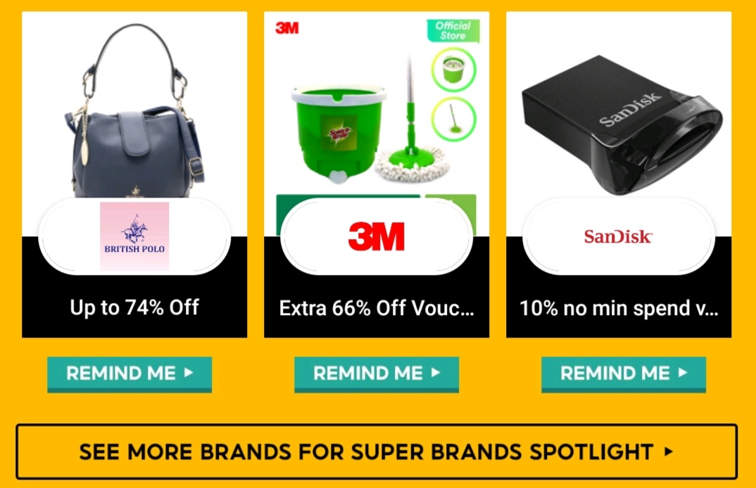 ii)各大牌商品大促销,如:Riino、Cosrx、Similac、3M、Sandisk等,高达74%折扣