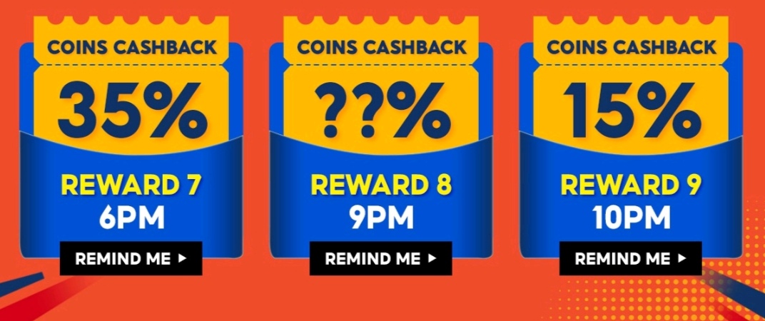 i)将在每个时段推出现金回扣优惠券!记得点击“Remind Me”获得通知!