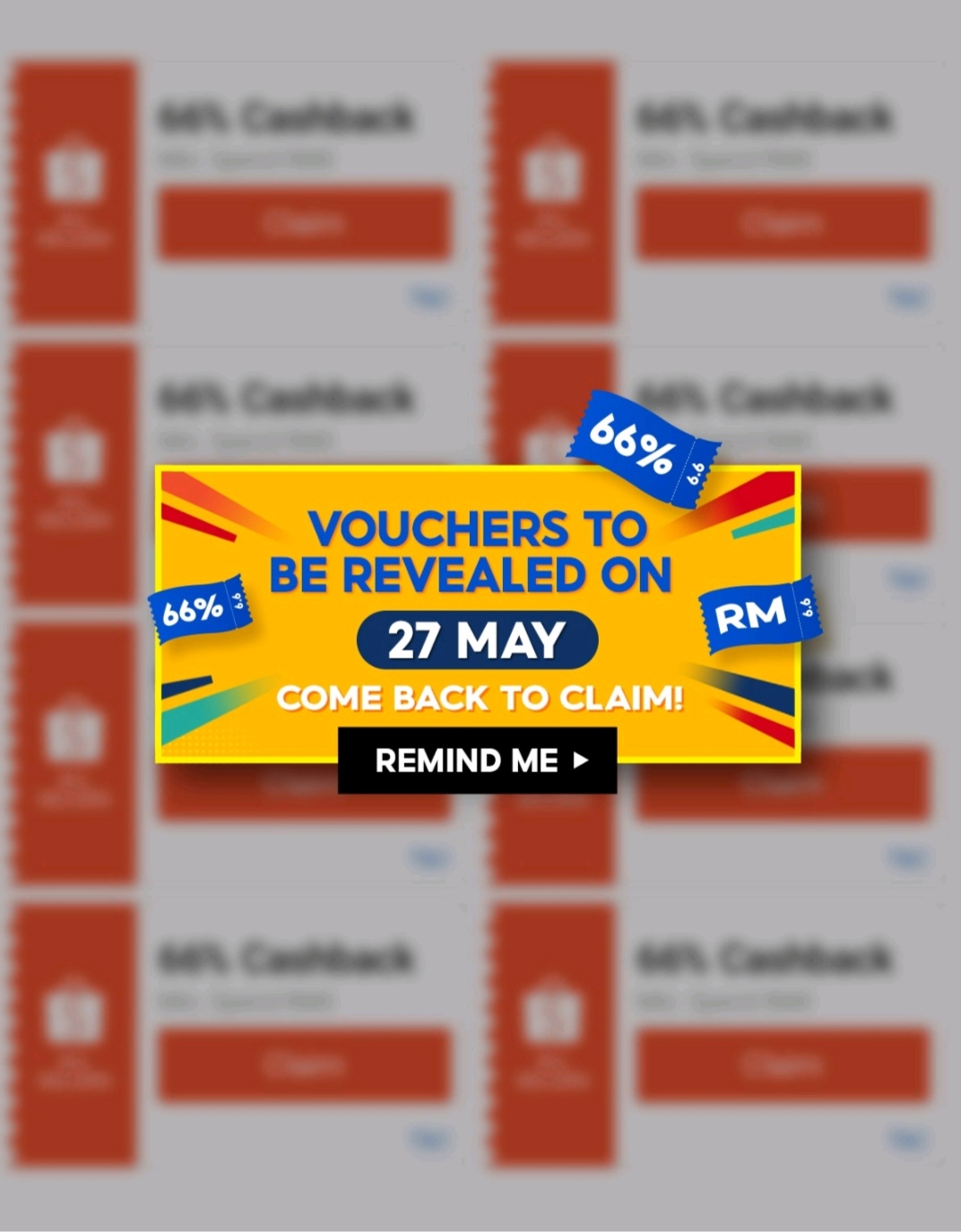 5月27日当天推出限时优惠商品,及可享有66% 现金回扣券!别忘了领取以下3张现金回扣券!