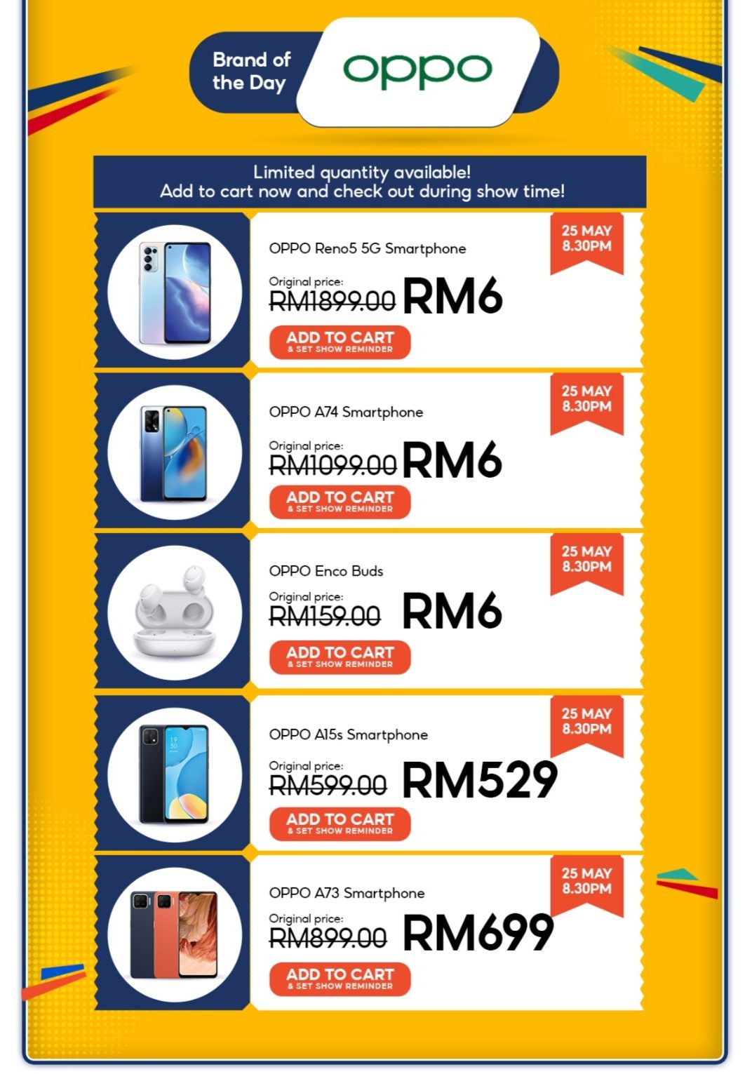 你真的没看错~这项优惠是由OPPO 与Shopee 联合推出5.25 PayDay Deals 超值优惠活动!手机只需RM6!