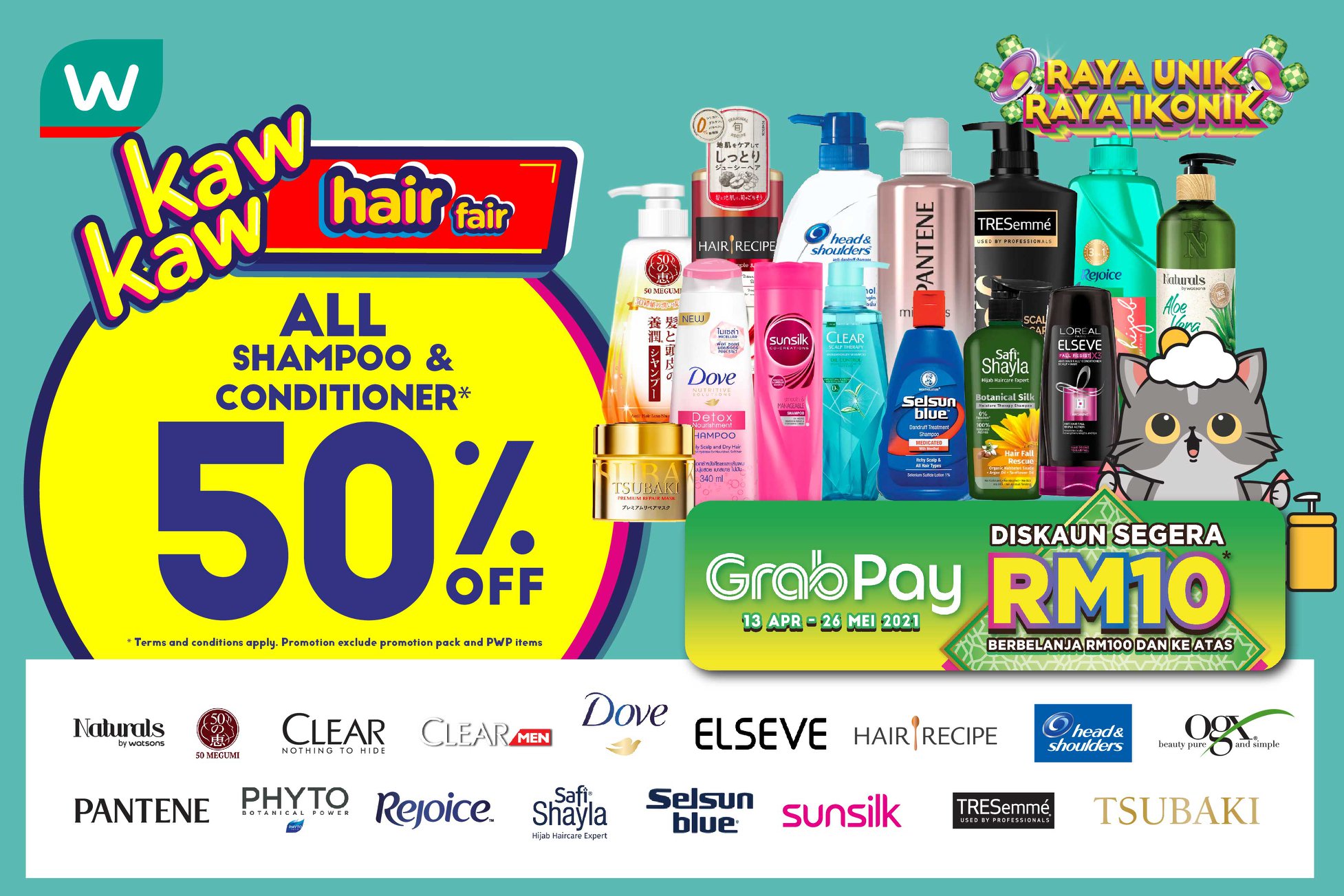 促销活动:大马Watsons 洗发液和护发素50%大促销!