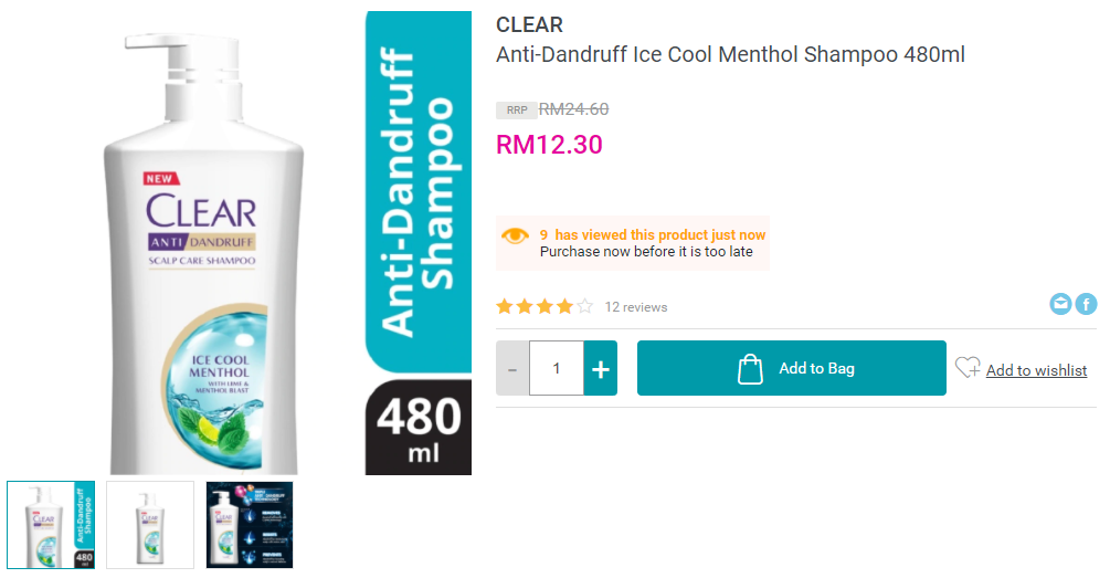 ▼ CLEAR Anti-Dandruff Ice Cool Menthol Shampoo 480ml – RM12.30