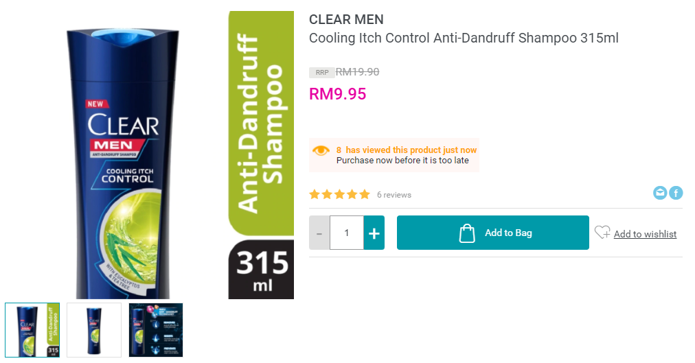 ▼ CLEAR MEN Cooling Itch Control Anti-Dandruff Shampoo 315ml – RM9.95