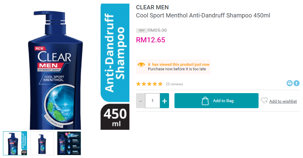 ▼ CLEAR MEN Cool Sport Menthol Anti-Dandruff Shampoo 450ml – RM12.65