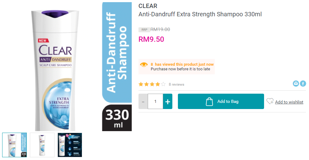 ▼ CLEAR Anti-Dandruff Extra Strength Shampoo 330ml – RM9.50