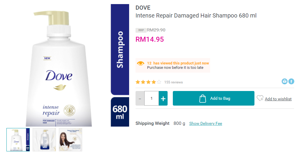 ▼ DOVE Intense Repair Damaged Hair Shampoo 680 ml – RM14.95