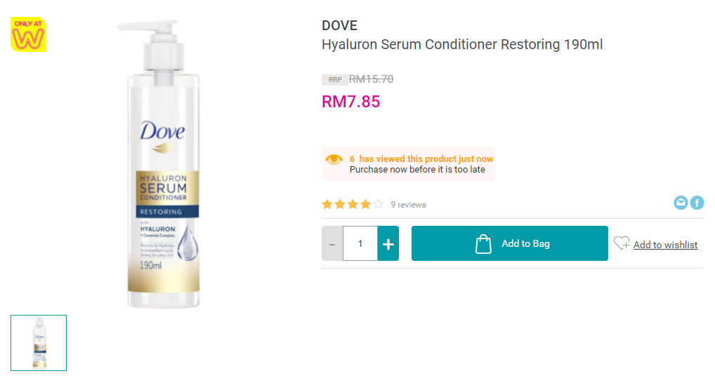 ▼ DDOVE Hyaluron Serum Conditioner Restoring 190ml – RM7.85
