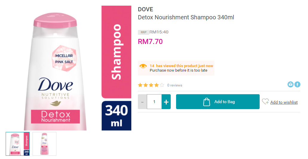 ▼ DOVE Detox Nourishment Shampoo 340ml – RM7.70