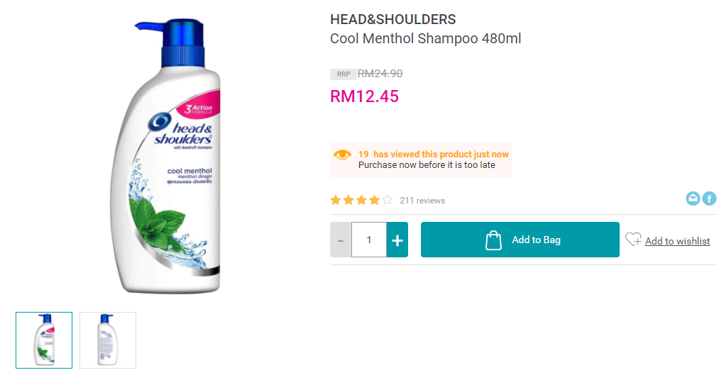 ▼ HEAD&SHOULDERS Cool Menthol Shampoo 480ml – RM12.45