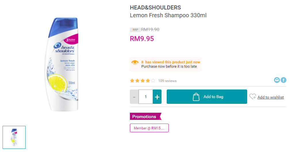 ▼ HEAD&SHOULDERS Lemon Fresh Shampoo 330ml – RM9.95