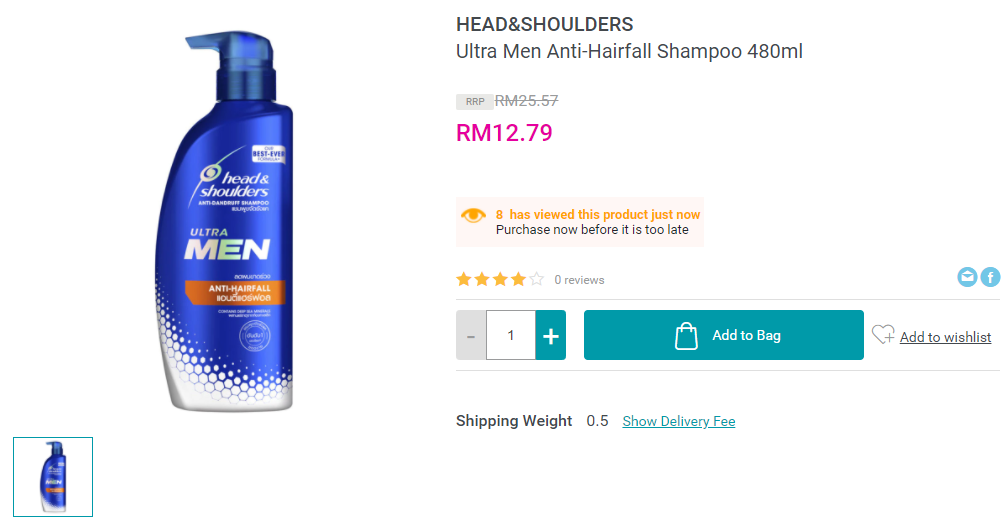 ▼ HEAD&SHOULDERS Ultra Men Anti-Hairfall Shampoo 480ml – RM12.79