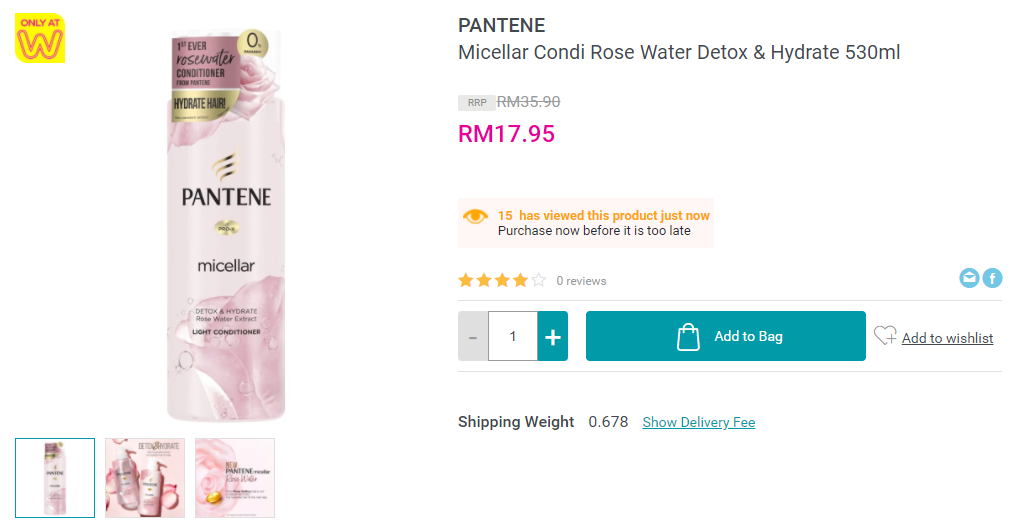 ▼ PANTENE Micellar Condi Rose Water Detox & Hydrate 530ml – RM17.95