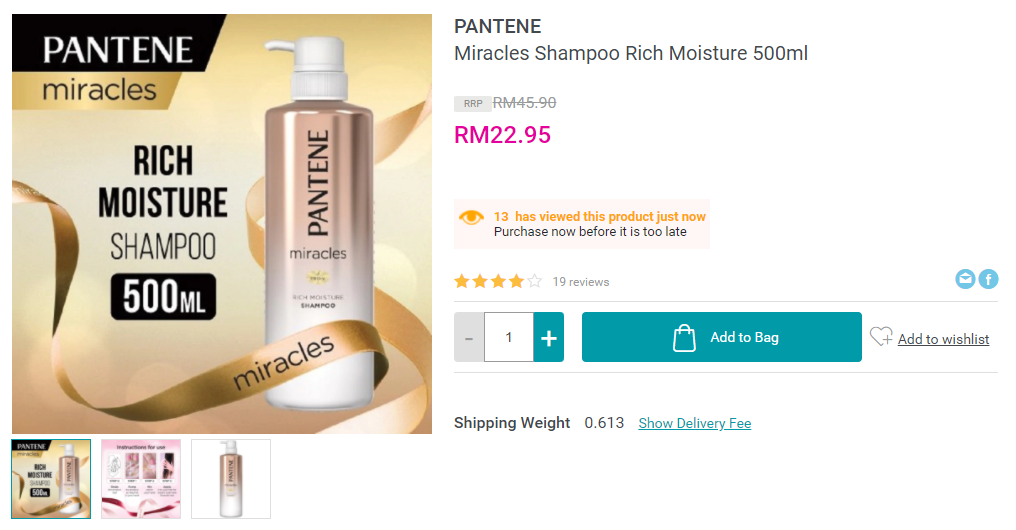 ▼ PANTENE Miracles Shampoo Rich Moisture 500ml – RM22.95