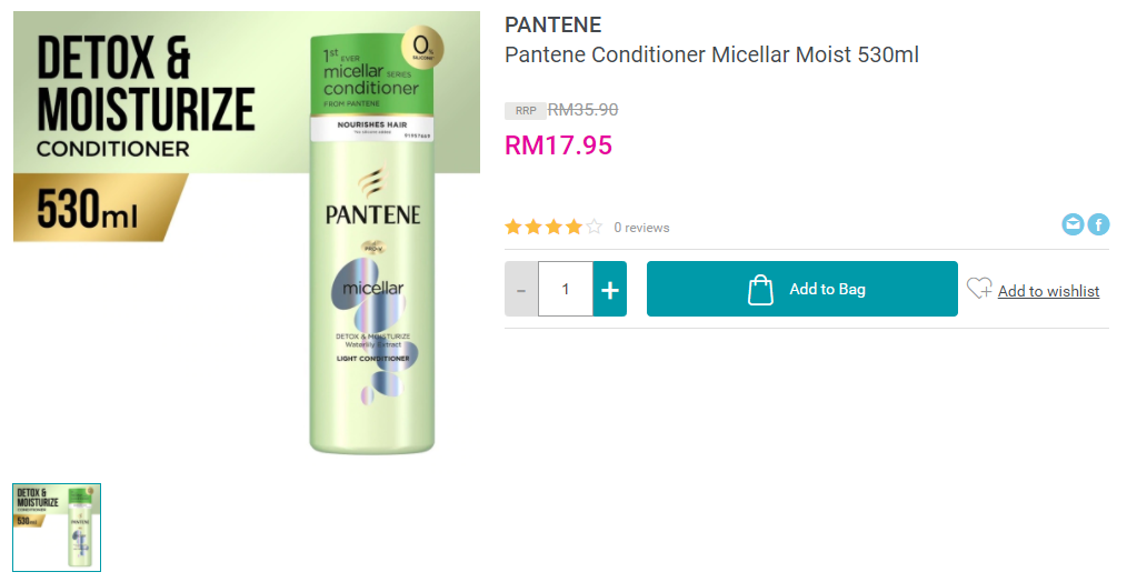 ▼ PANTENE Pantene Conditioner Micellar Moist 530ml – RM17.95