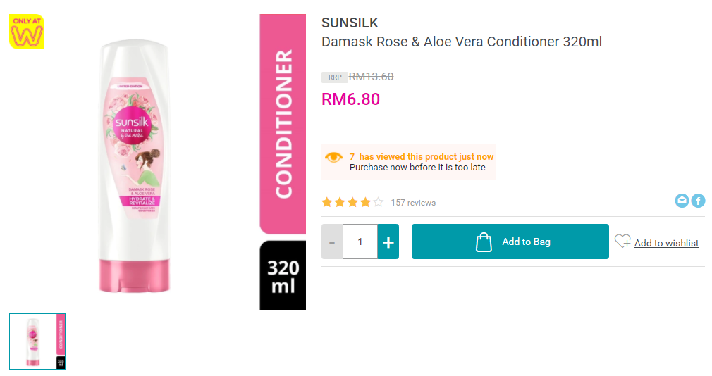 步骤6:2瓶Sunsilk 洗发液+2瓶护发素(原价RM27.10),折扣RM20之后只需RM7.10!平均一瓶只需RM1.78!(自行去Watsons 分行领取商品,无需给任何邮寄费用)