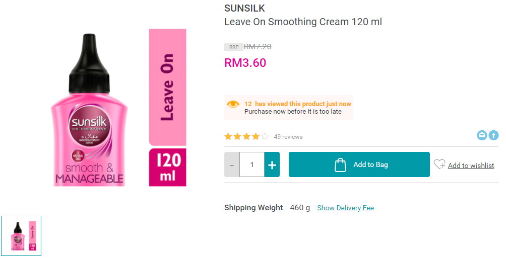 ▼ SUNSILK Leave On Smoothing Cream 120 ml – RM3.60