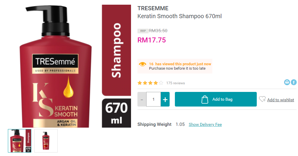 ▼ TRESEMME Keratin Smooth Shampoo 670ml – RM17.75