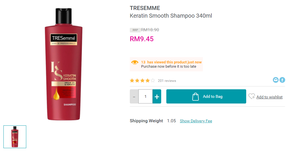 ▼ TRESEMME Keratin Smooth Shampoo 340ml – RM9.45