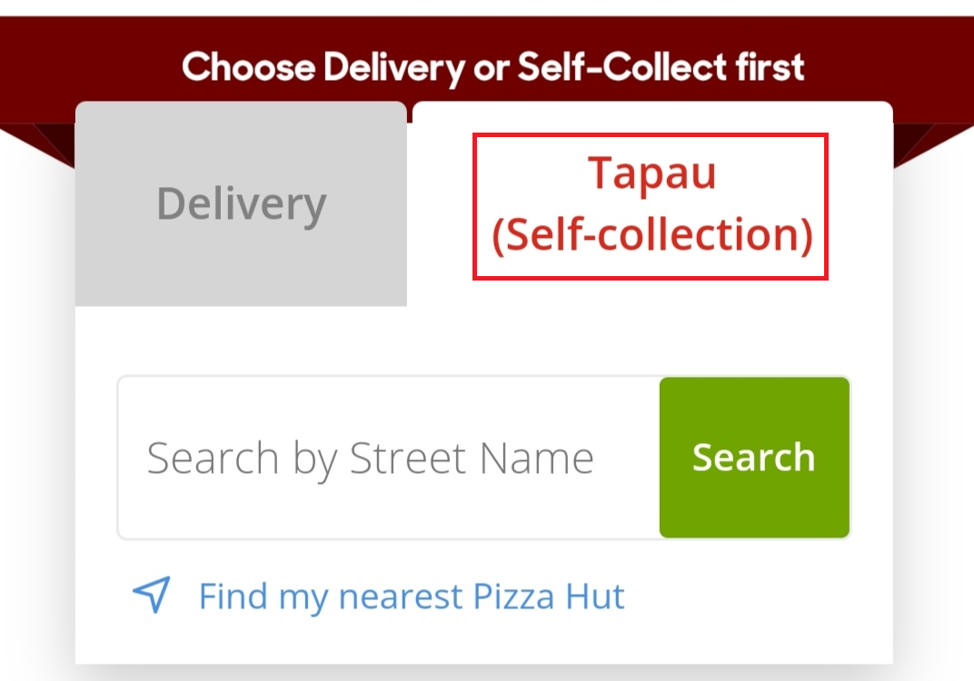 步骤2:浏览Pizza Hut 官网【点击这里】,选择“Tapau”,选择临近你家的Pizza Hut 分行。