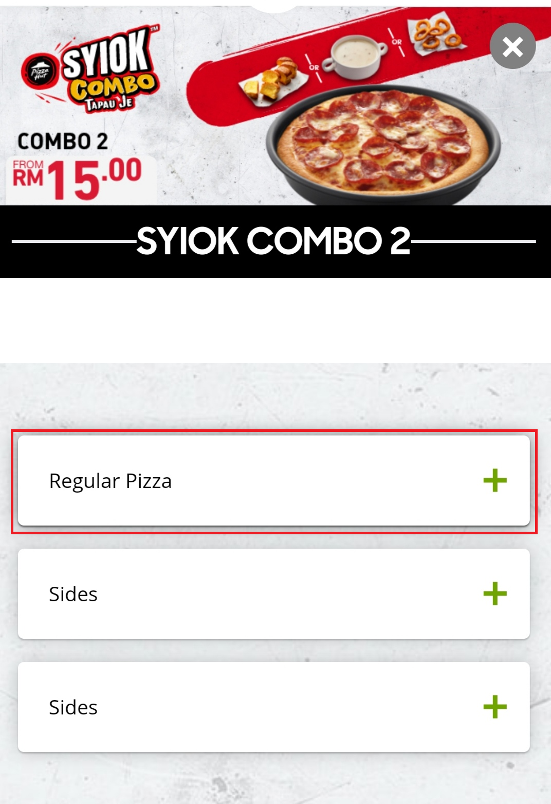 这项优惠是由Pizza Hut 官网推出Pizza 套餐(Syiok Combo 2)优惠!只要你通过小编这方式购买一份Regular Pizza +2份小吃只需RM11!真的很值得哦!