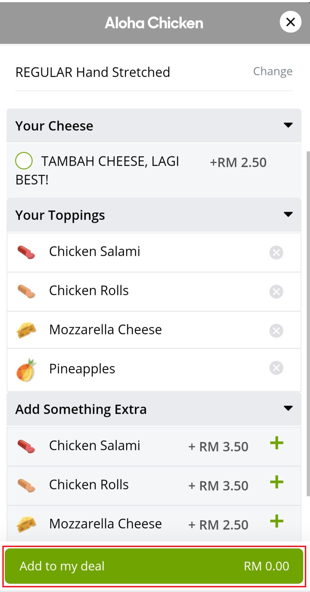 步骤 6:选择你想要的饼皮及是否额外添加配料。然后,点击「Add To My Deal」。
