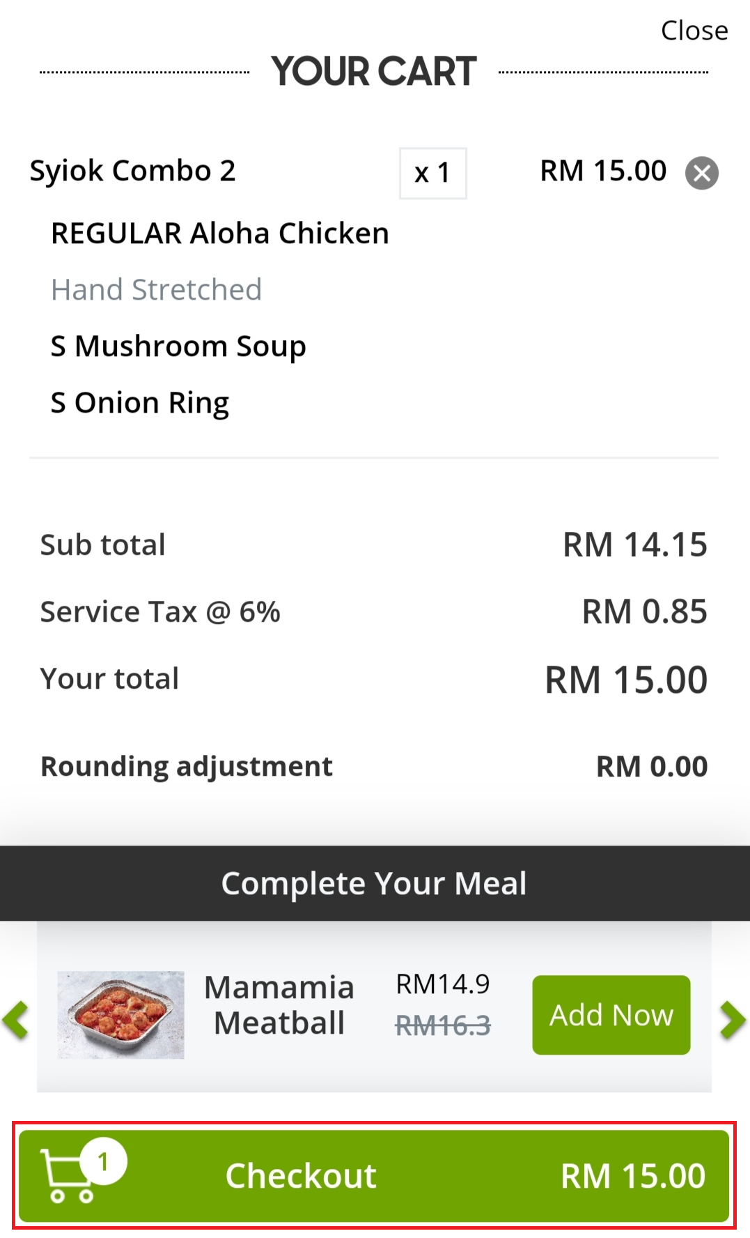 ※ 这样的话1份Regular Pizza + 2份小吃只需RM11(原价RM15)!太值得啦~