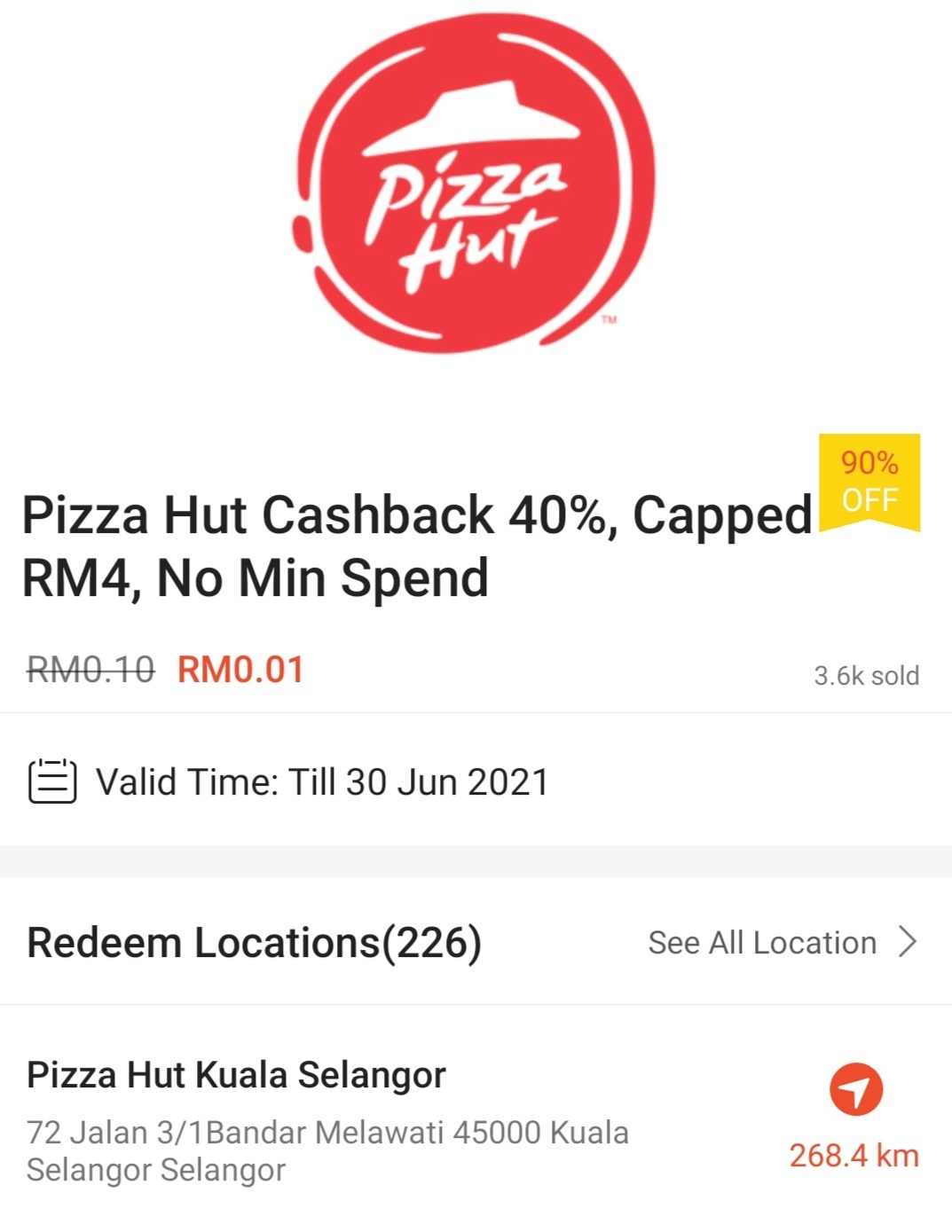 步骤1:首先在Shopee 购买Pizza Hut 40% 折扣礼券(高达RM4 回扣);购买【点击这里】!
