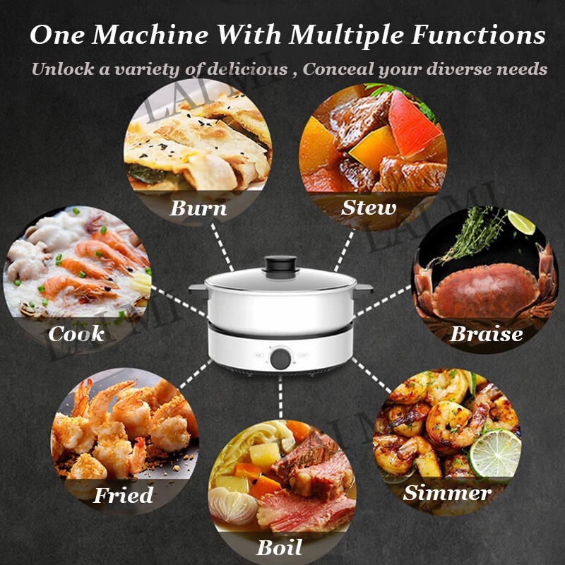 - 功能:蒸、煮、炒、火锅、炖等各种烹饪用途(附送蒸盘)