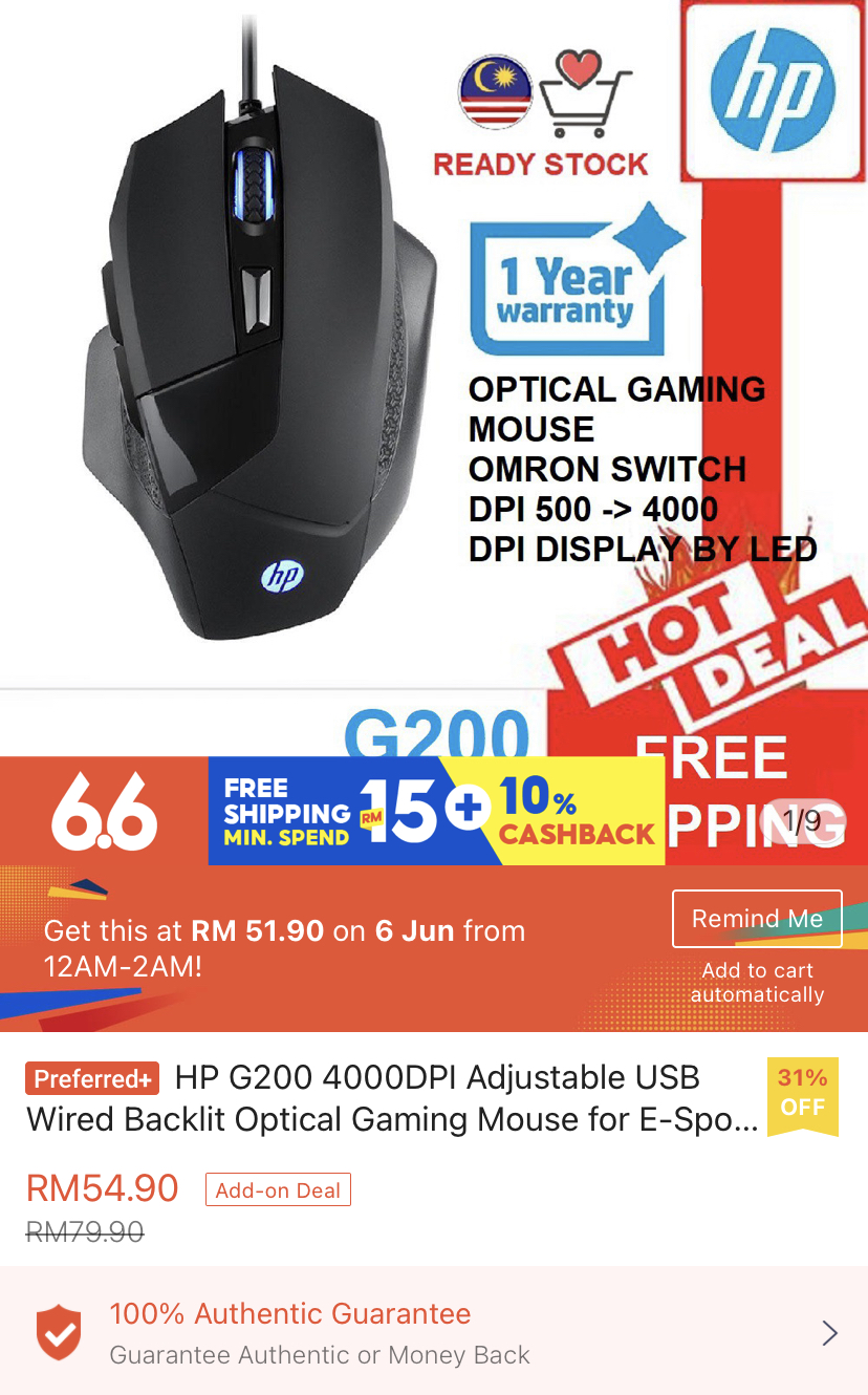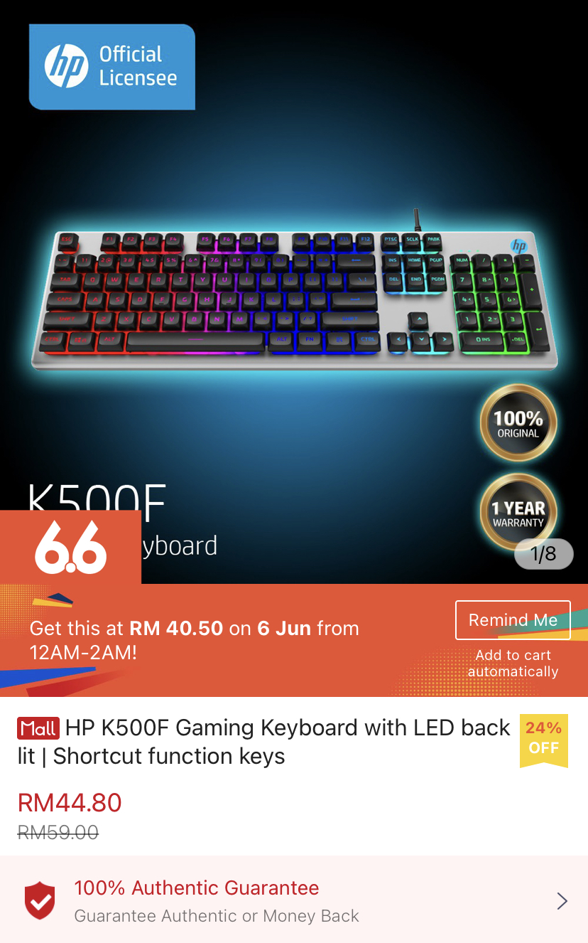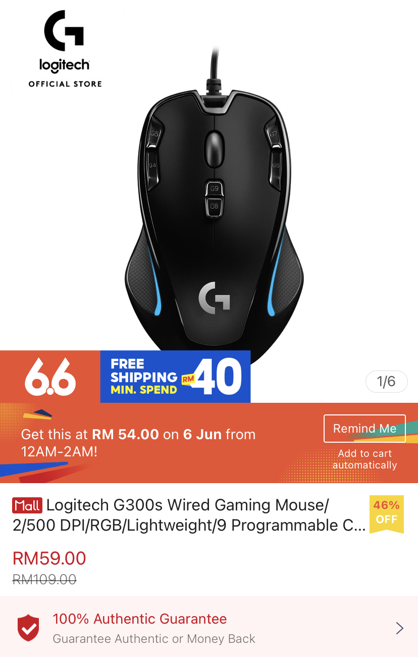 Shopee:RM59 6.6优惠价 RM40.50【点击这里】