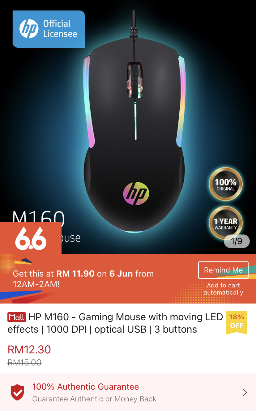 Shopee:RM15 6.6优惠价 RM11.90【点击这里】