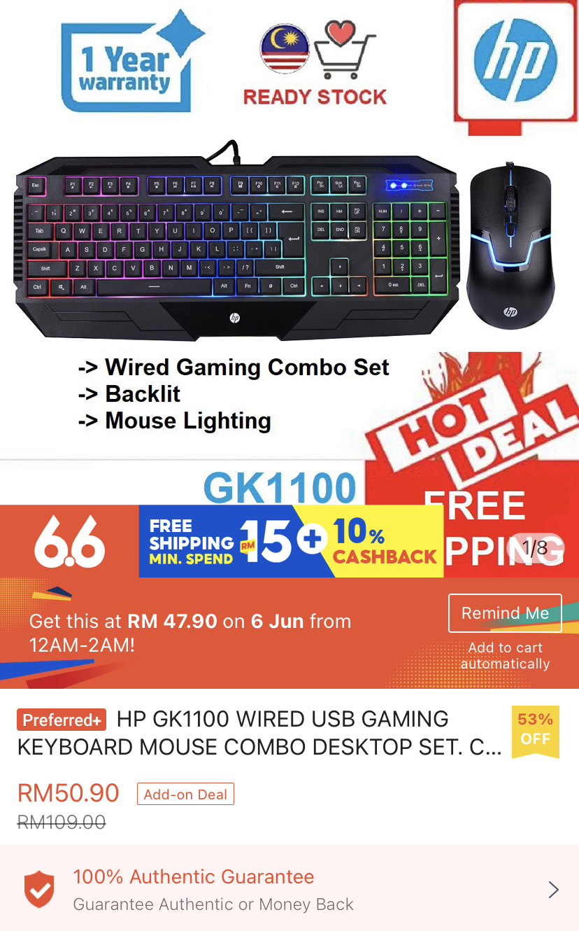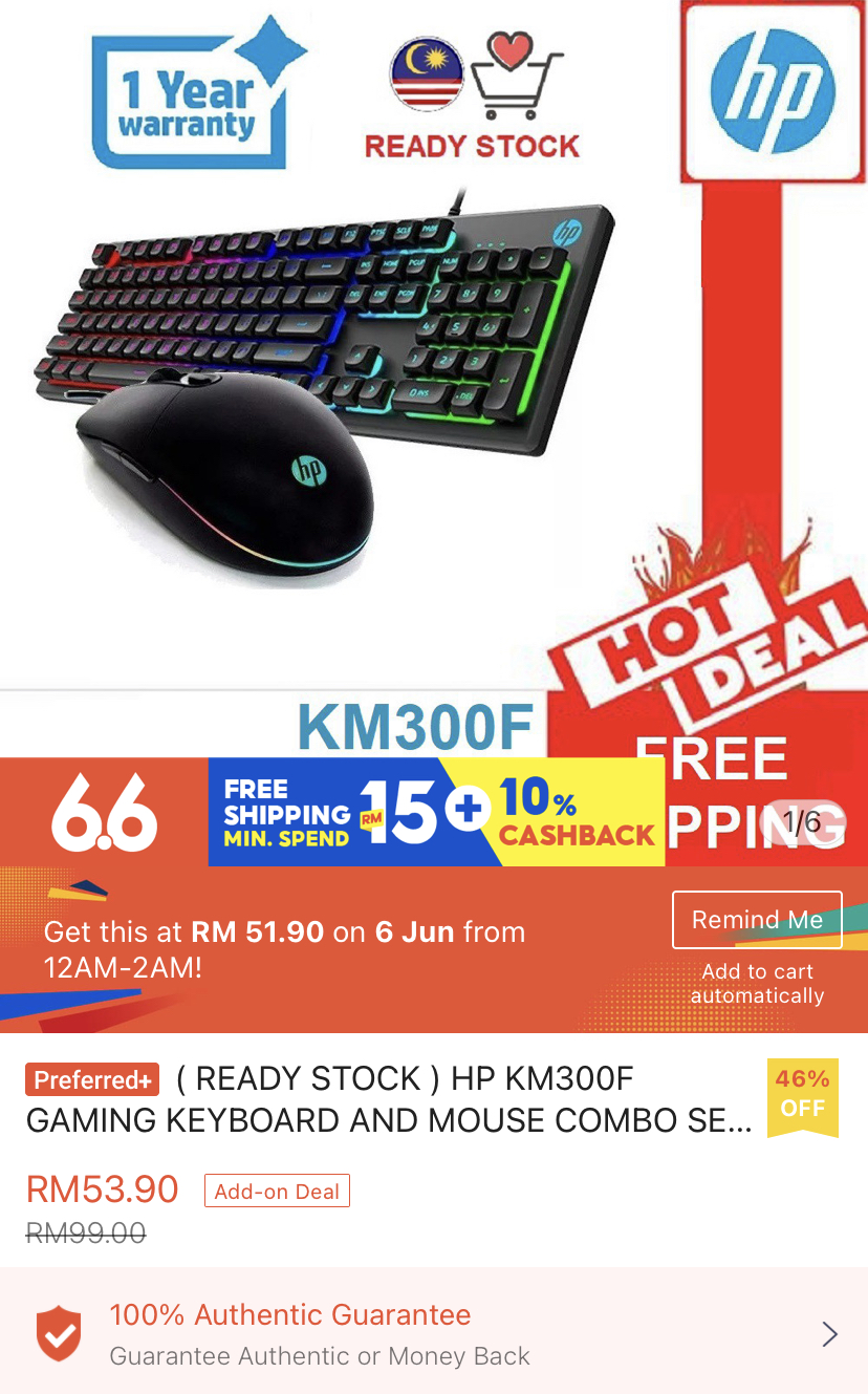 Shopee:RM109 6.6优惠价 RM49【点击这里】
