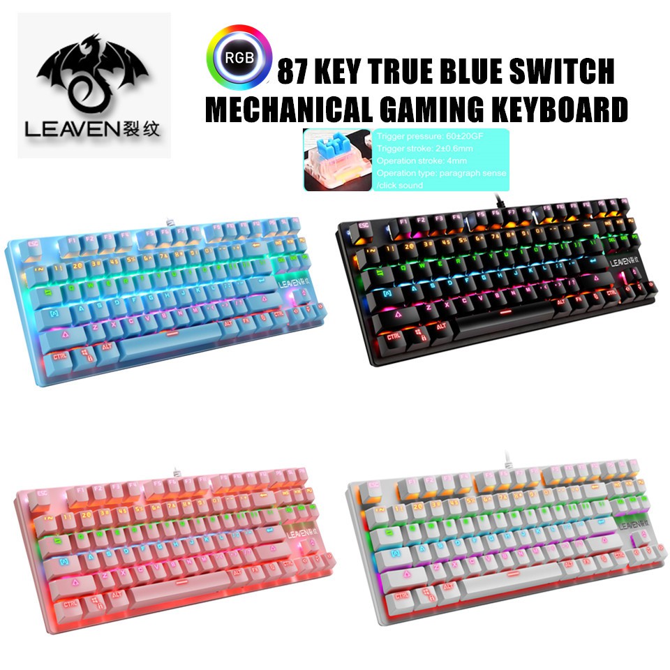 ▶ LEAVEN RGB 87 KEY TRUE Blue Switch Mechanical Gaming Keyboard