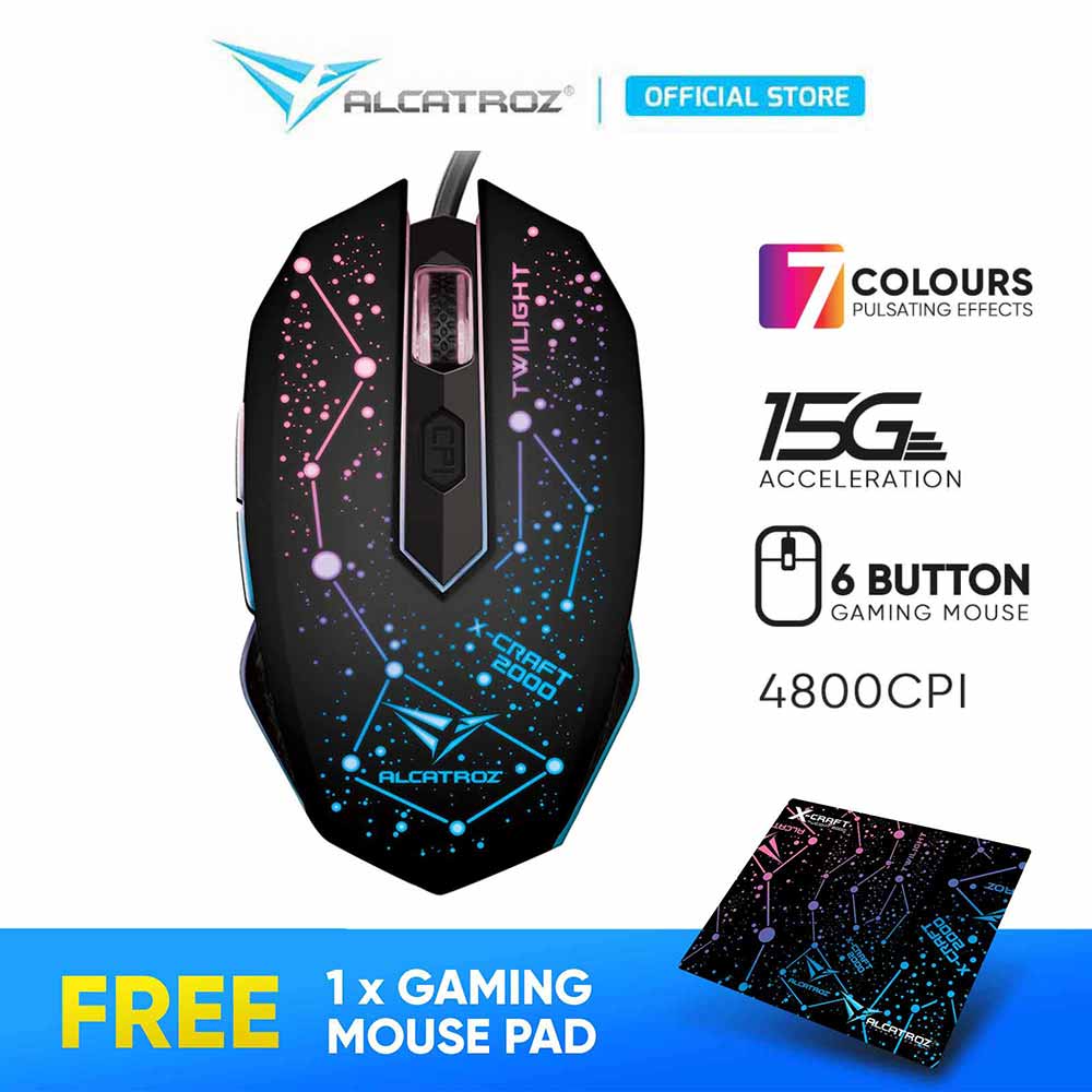 ▶ Alcatroz X-Craft Pro Series 4800 CPI Gaming Mouse with Lighted LED Free Mousemat + USB-C Adapter