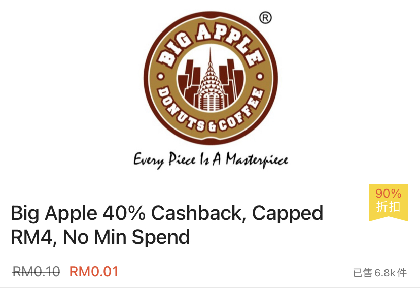 ▼ ⑩ Big Apple – 40%现金回扣(最高折扣RM4 / 无需最低消费)【点击这里】