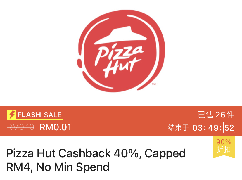 ▼ ② Pizza Hut – 40%现金回扣(最高折扣RM4 / 无需最低消费)【点击这里】