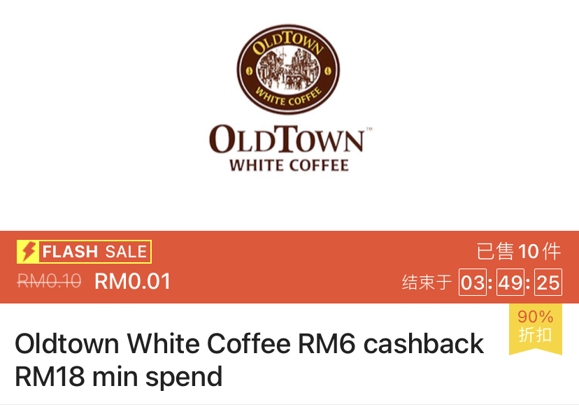 ▼ ③ Oldtown White Coffee – 消费满RM18可获RM6现金回扣【点击这里】