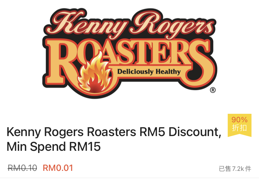 ▼ ⑤ Kenny Rogers Roasters – 消费满RM15可享有RM5折扣【点击这里】