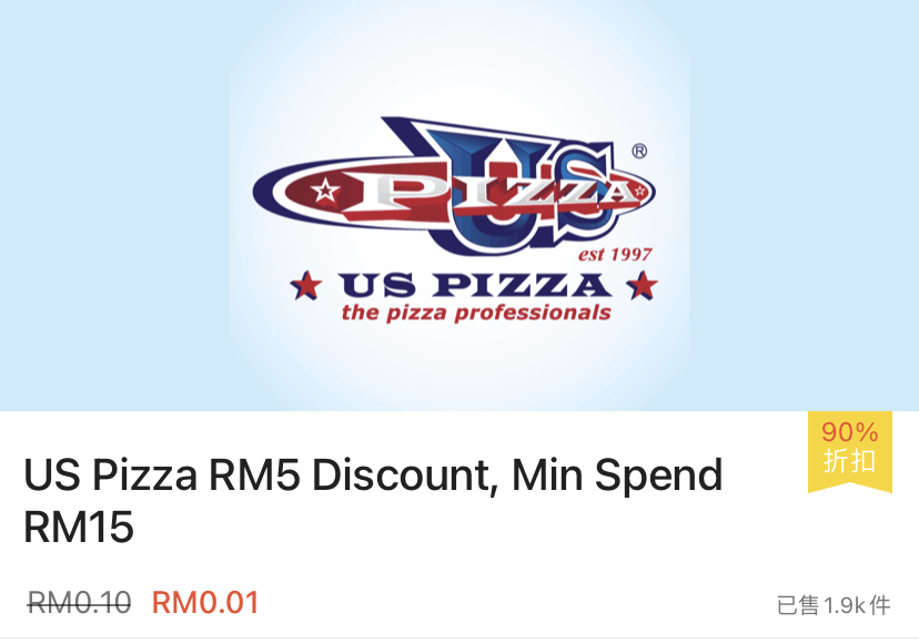 ▼ ⑧ US Pizza – 消费满RM15可享有RM5折扣【点击这里】