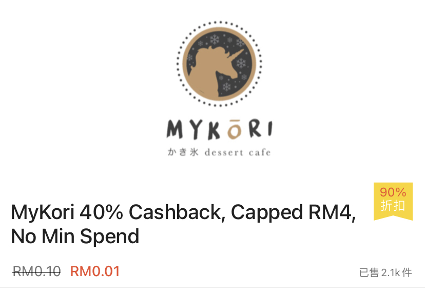 ▼ ⑫ MyKori – 40%现金回扣(最高折扣RM4 / 无需最低消费)【点击这里】