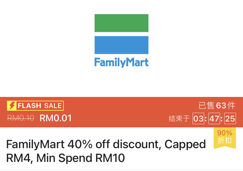 ▼ ④ FamilyMart – 消费满RM10可获RM4现金回扣【点击这里】