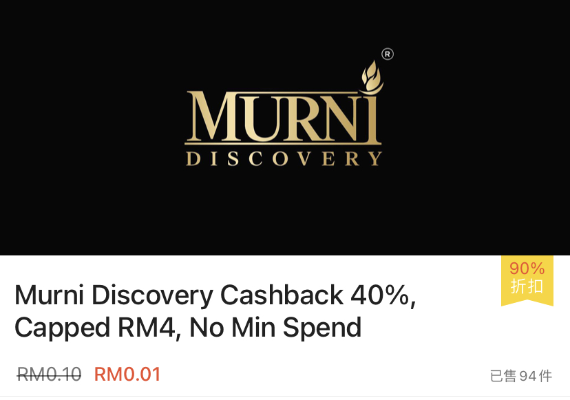 ▼ ⑮ Murni Discovery – 40%现金回扣(最高折扣RM4 / 无需最低消费)【点击这里】