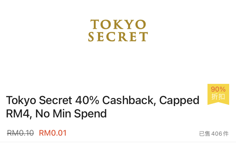 ▼ ⑬ Tokyo Secret – 40%现金回扣(最高折扣RM4 / 无需最低消费)【点击这里】