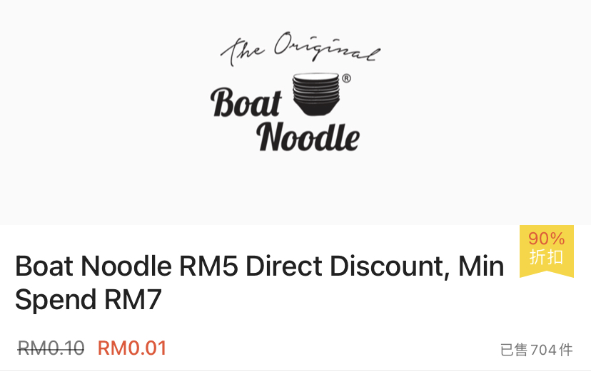 ▼ ⑥ Boat Noodle – 消费满RM7可享有RM5折扣【点击这里】