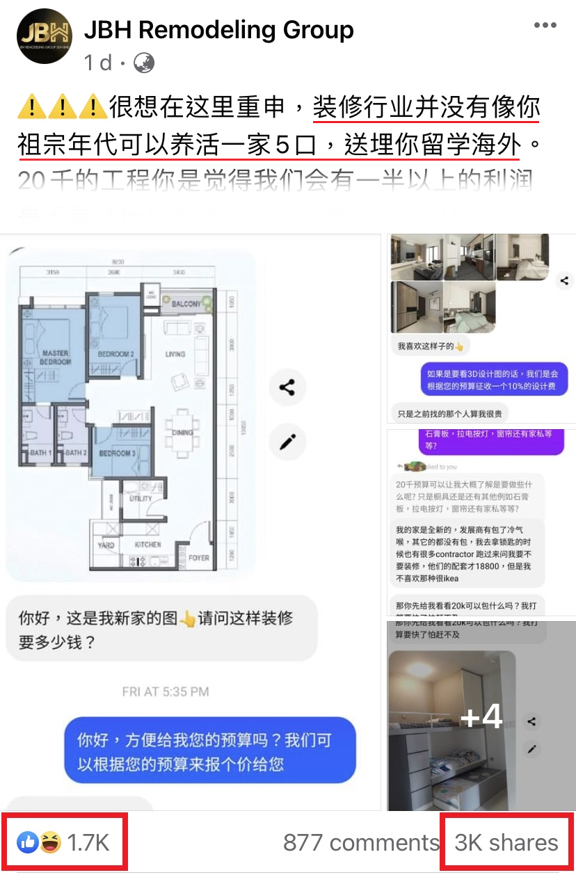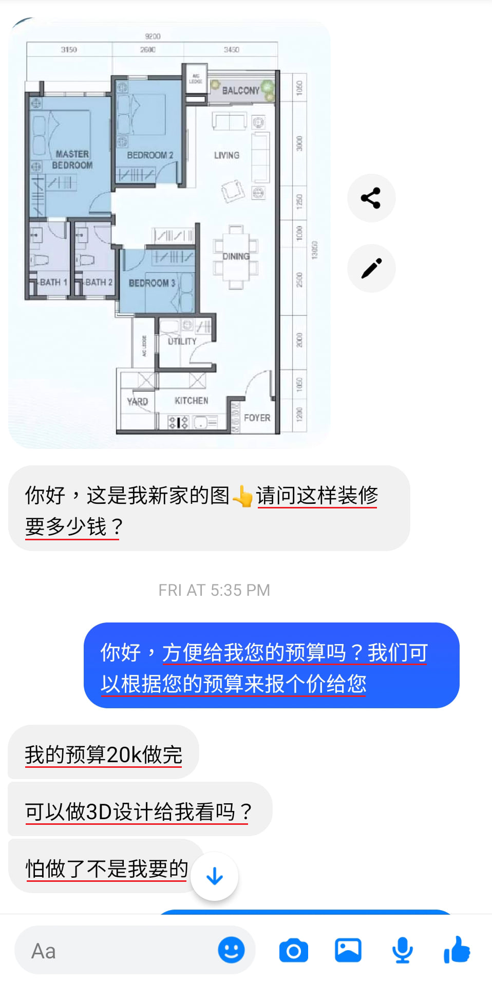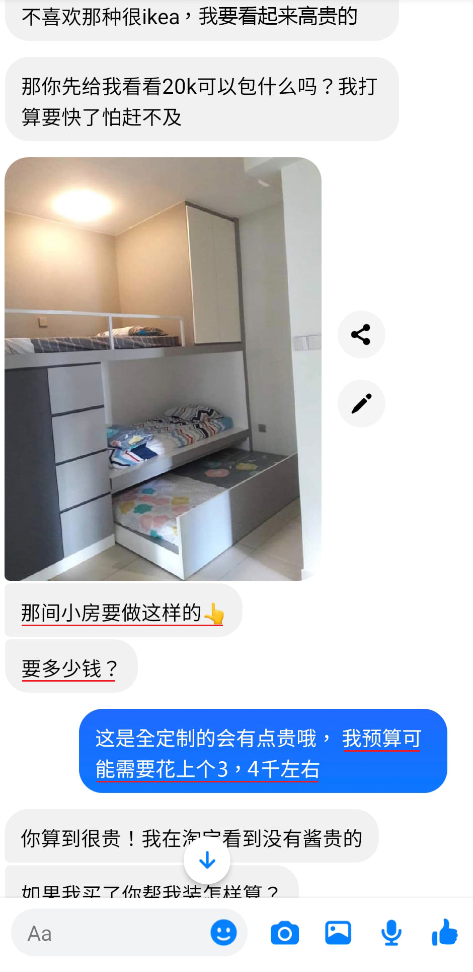 大马一家室内设计公司近日在脸书粉专分享和一位奥客的谈话内容,网友们看了都觉得很傻眼!