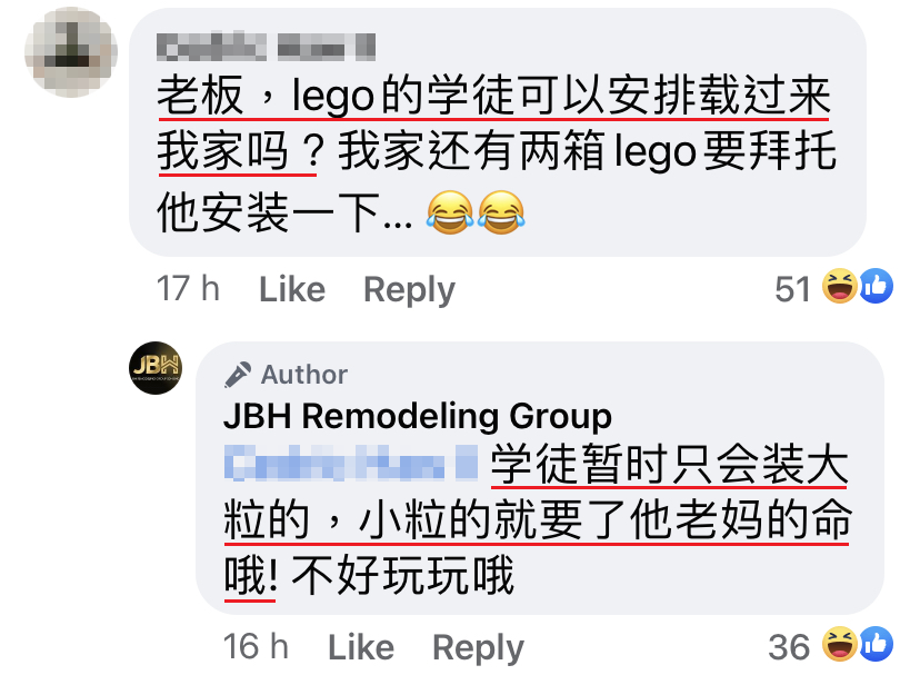 设计师,装俢师傅也是人,抚心自问,免费的劳力你做吗?最后送的LEGO,我孩子也用了半小时,这个是在提醒你要体恤別人的辛苦!不要再打來骂人咯,要不然我们就公开帐号。