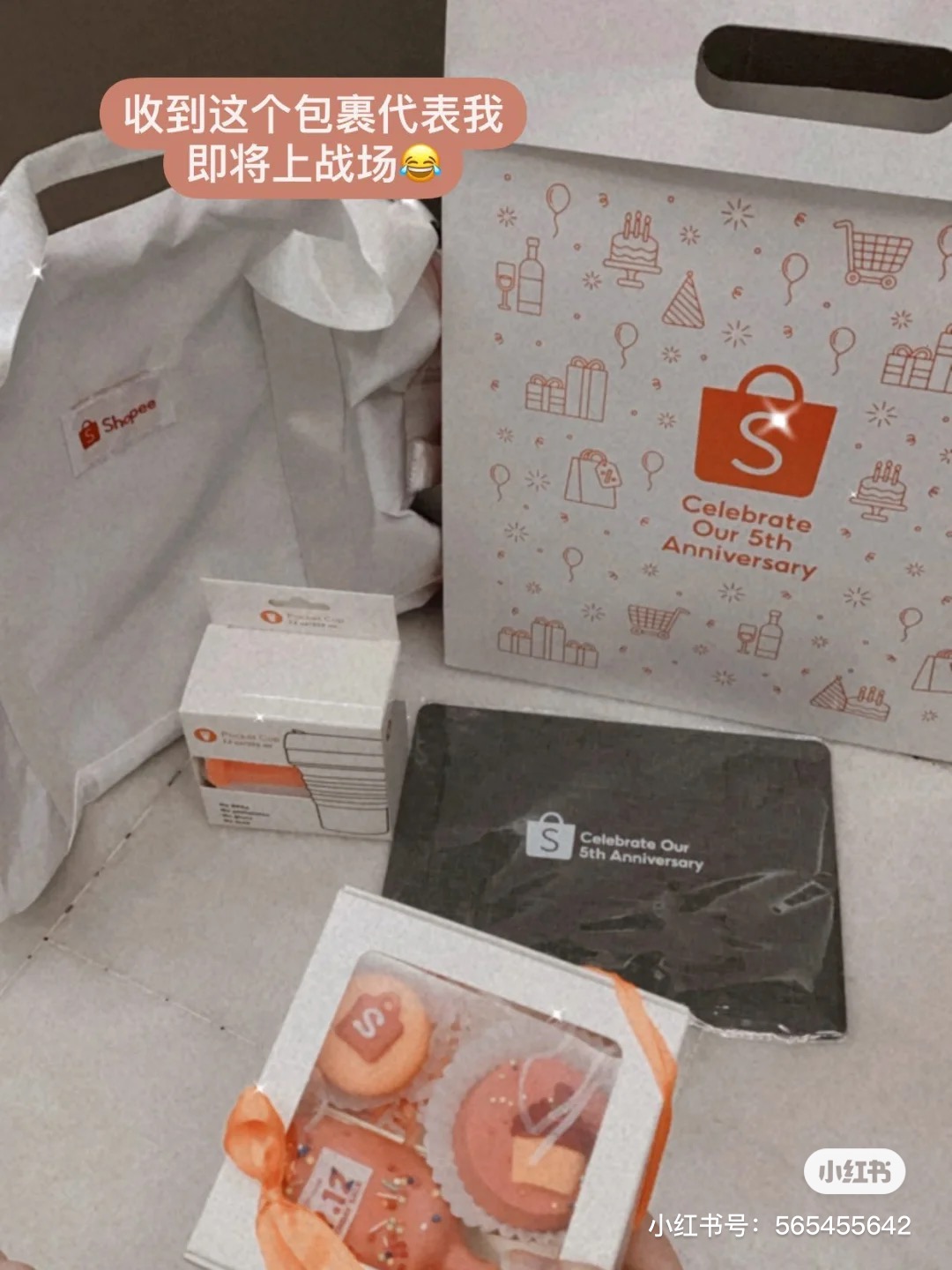 Mega sales 如:双11、双12、CNY(农历新年)或 Raya(开斋节),Shopee 就会寄 care pack 给我们。