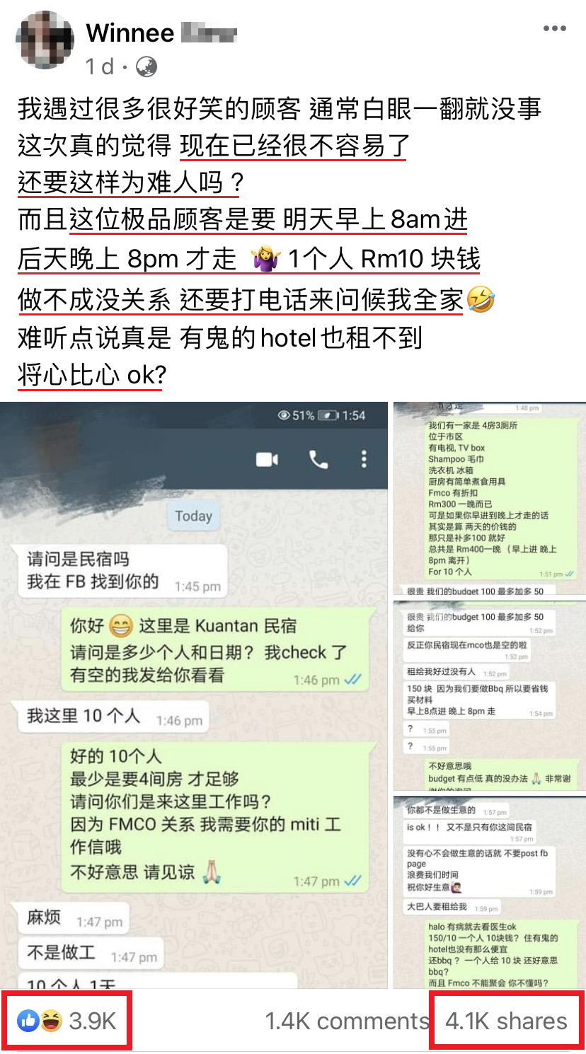 极品顾客:我们10人住一晚Budget RM100!大马民宿「霸气神回复」网民直呼痛快!